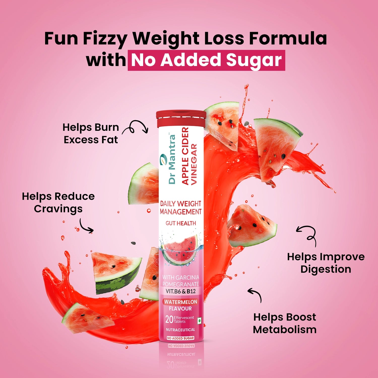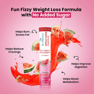 | Net Quantity | 20 Effervescent Tablets (Apple Cider Vinegar – Weight Management • Fat Burning • Metabolism Booster • Craving Control • Watermelon Flavour • No Added Sugar) |